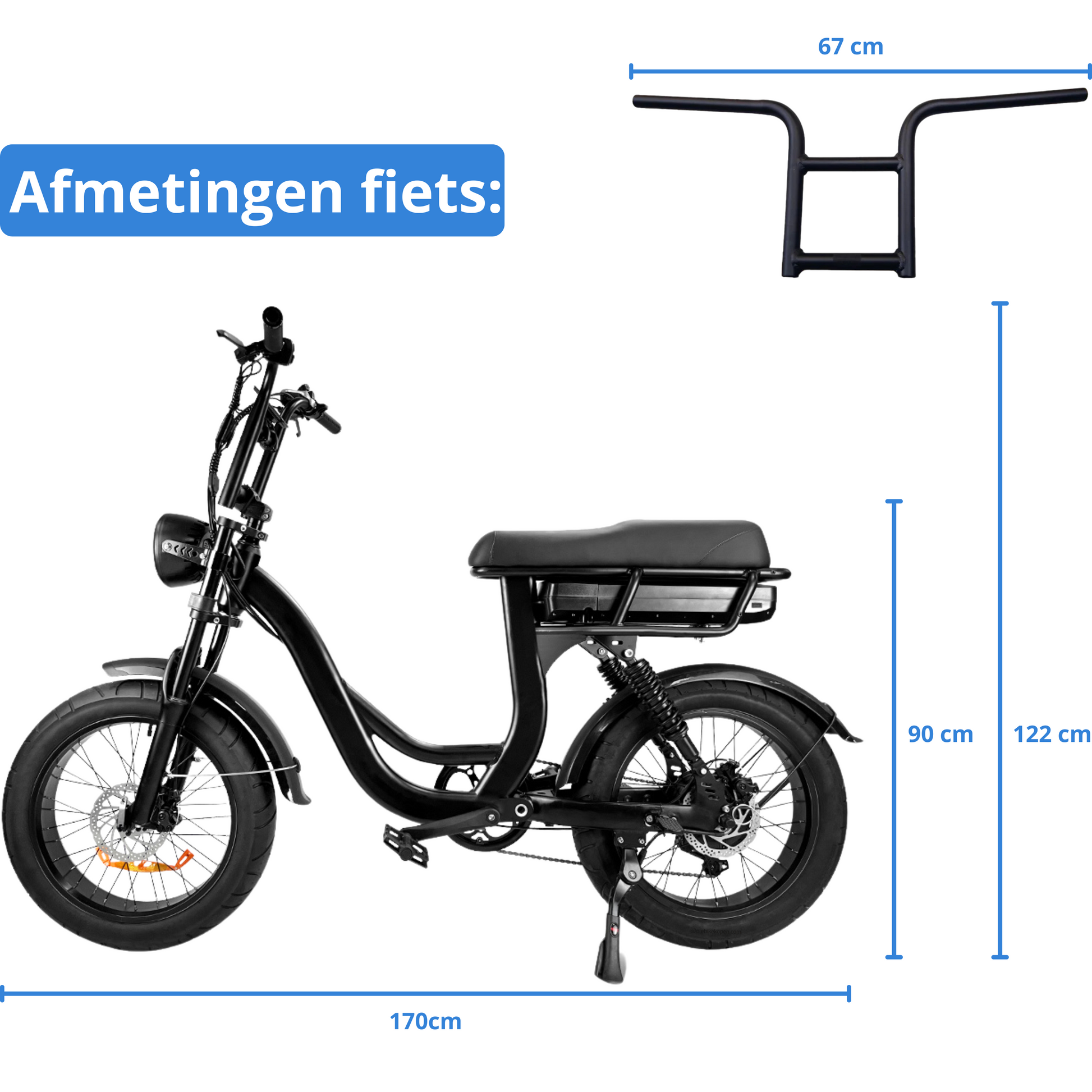 ✅ Extra lang zadel, geschikt voor 2 personen, met passagiersvoetsteunen (zonder zitje inbegrepen